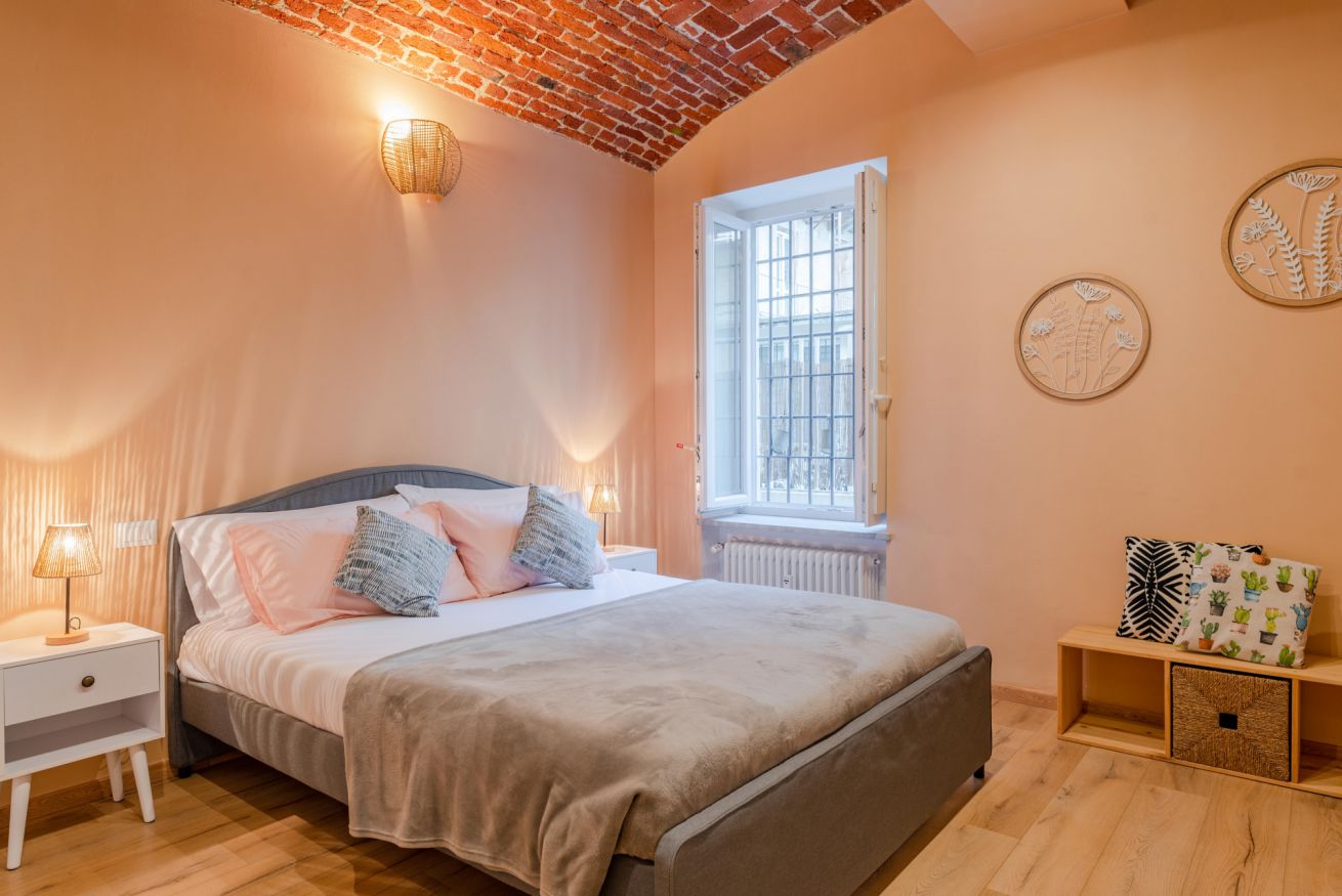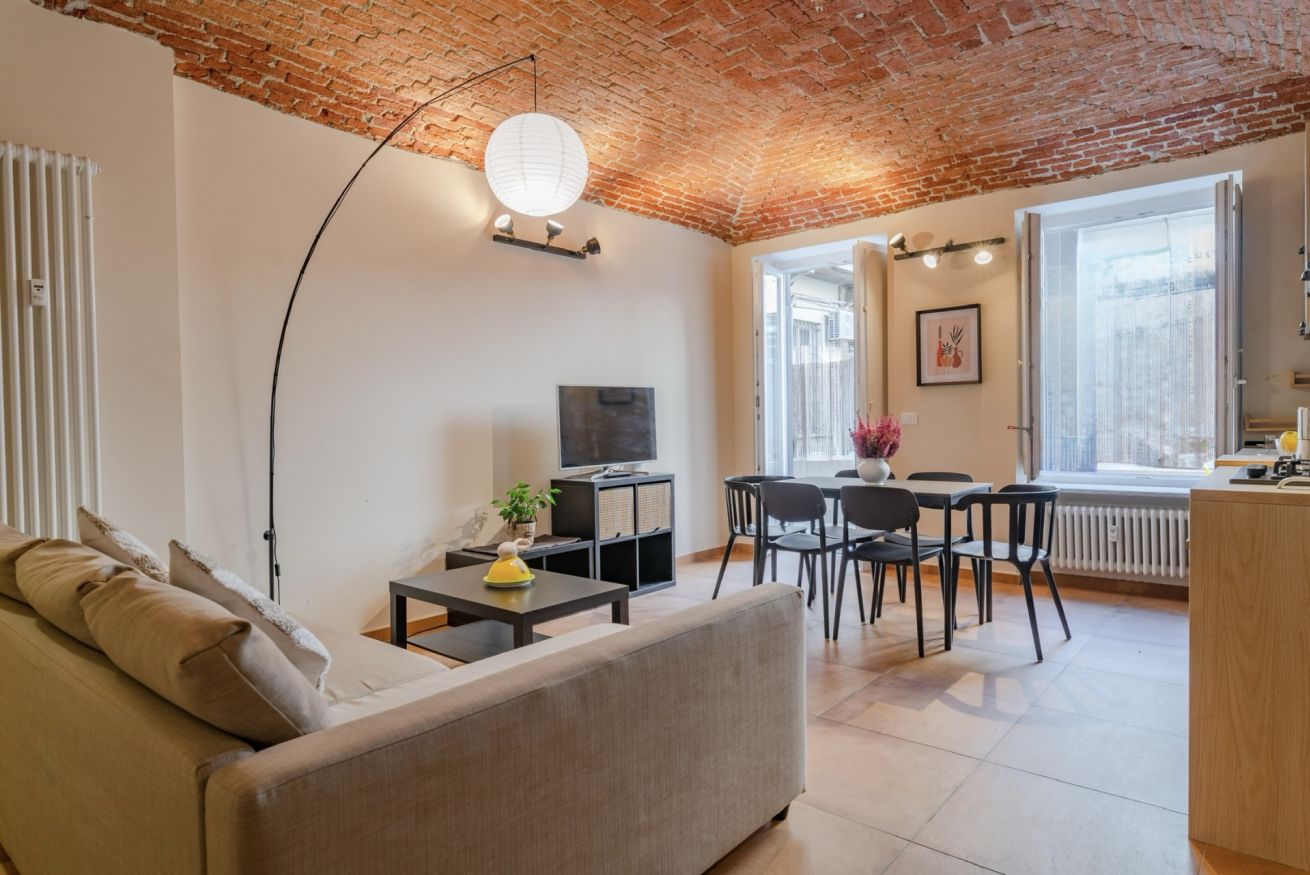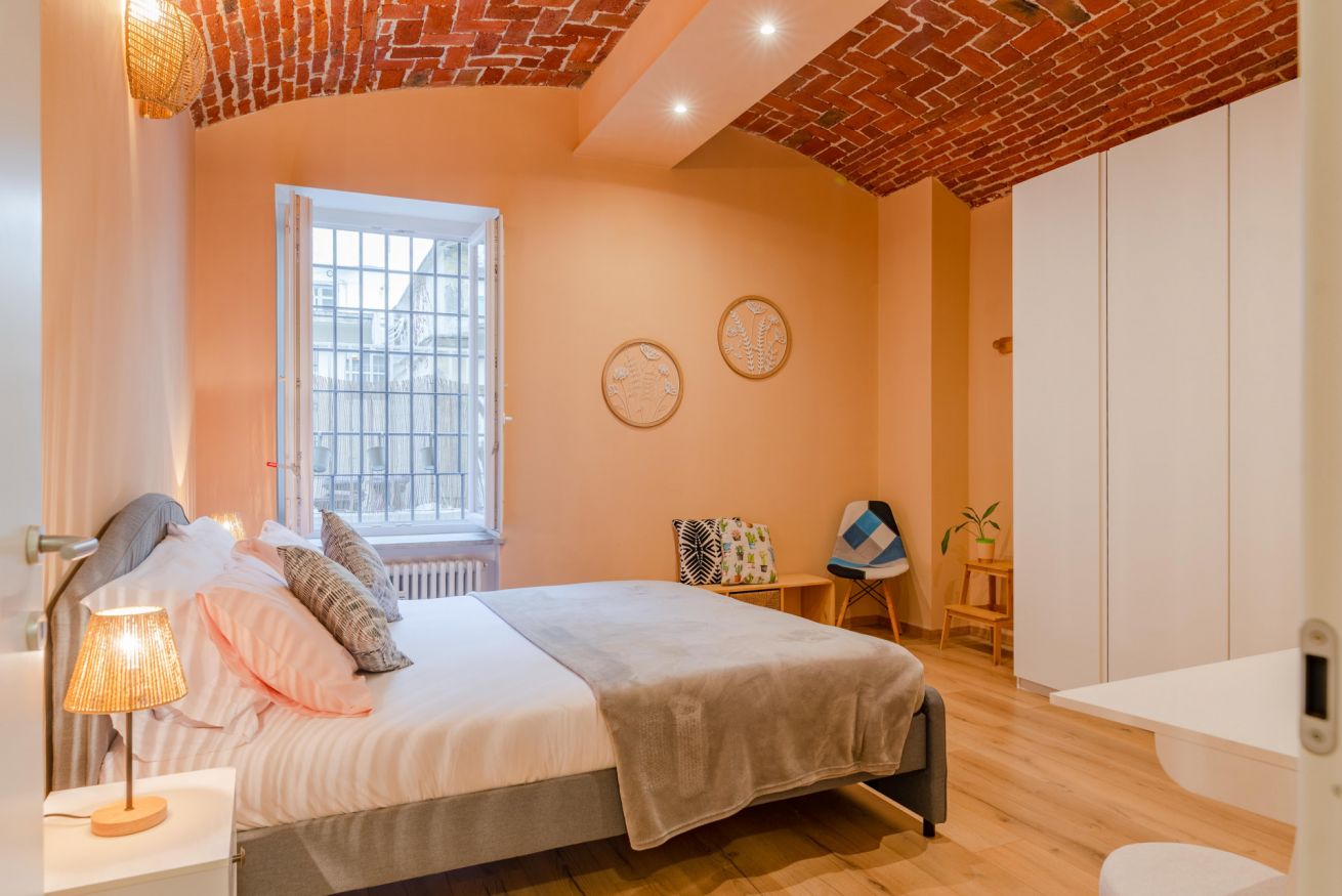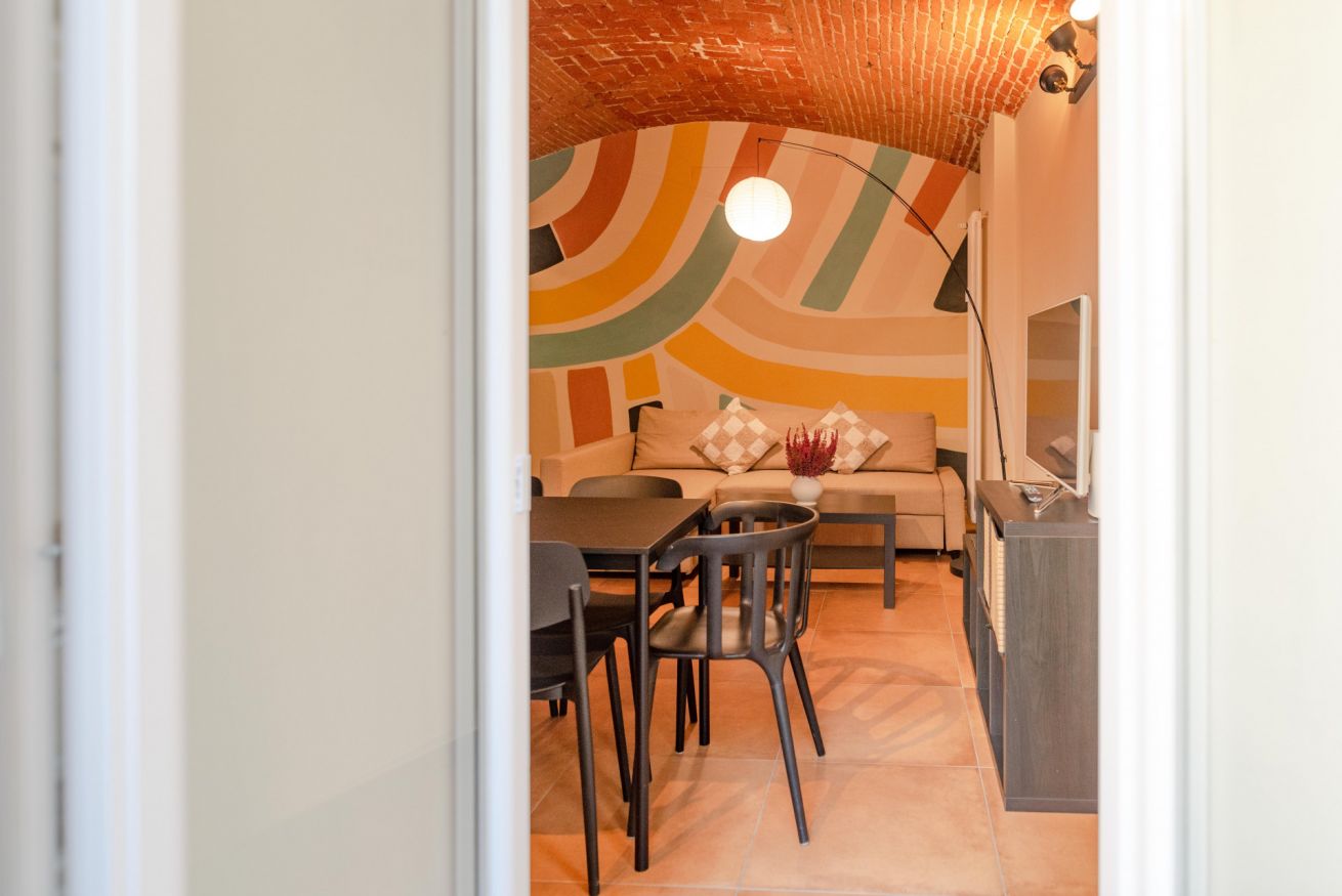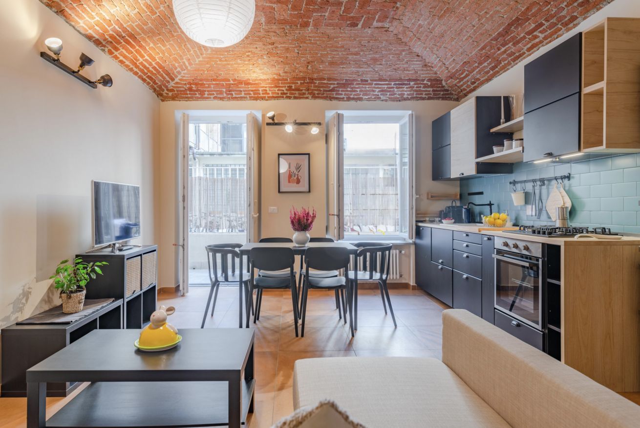 Situato nel cuore di San Salvario, questo appartamento unisce fascino e comfort. I soffitti in muratura ad arco e lo stile accogliente rendono l’ambiente unico. Dispone di due camere da letto (una matrimoniale e una con due letti singoli) e un divano letto nel soggiorno per un totale di 6 posti letto. Il bagno con vasca-doccia è spazioso e funzionale e la cucina è completamente attrezzata con tutto il necessario per cucinare e mangiare in autonomia: piano cottura, forno, frigorifero, lavastoviglie, utensili e stoviglie. Al piano terra, con terrazzino privato ideale per rilassarsi.