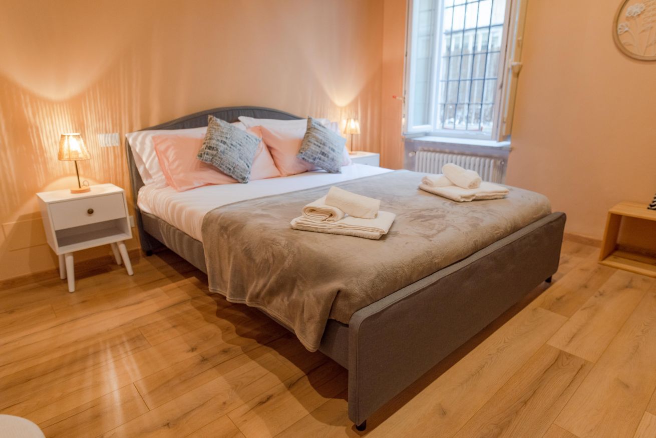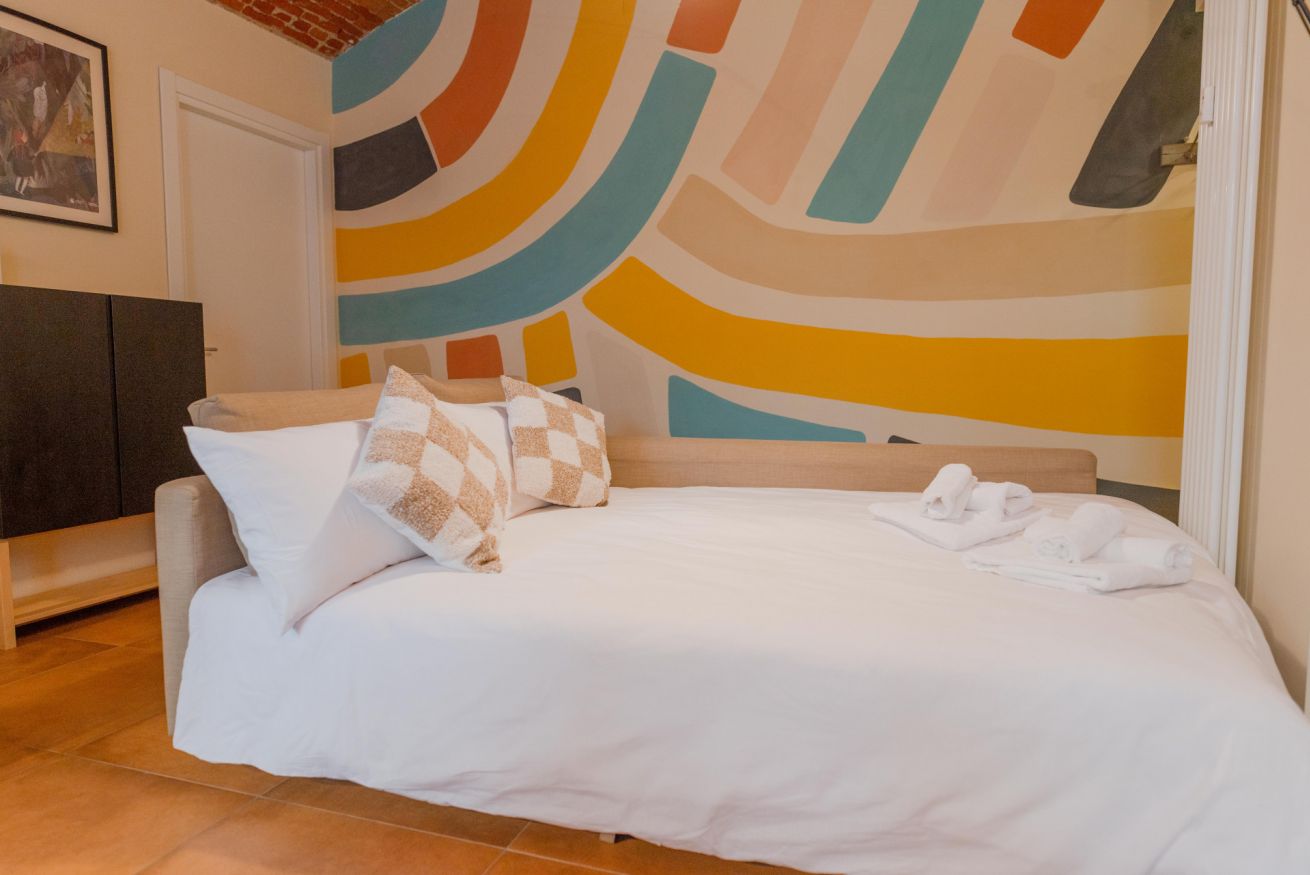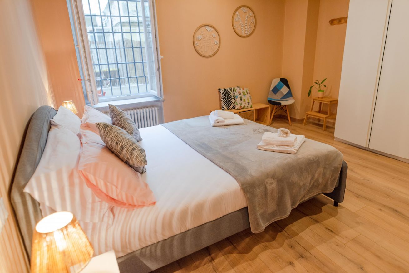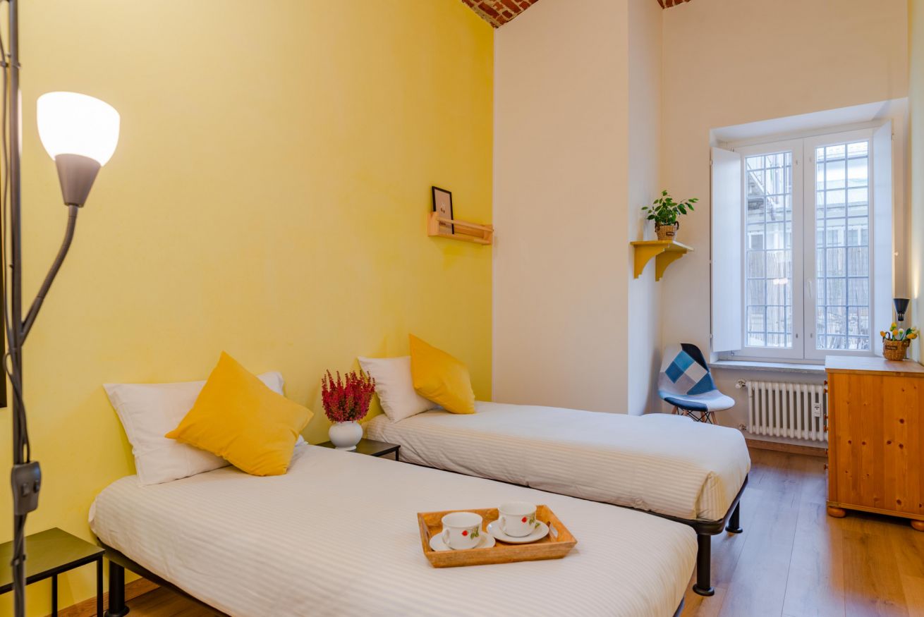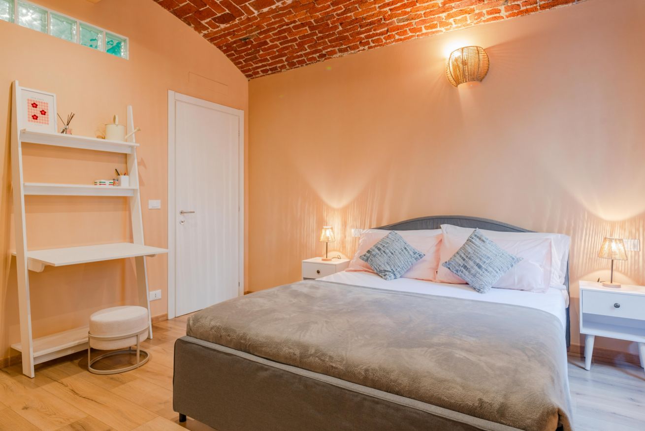 Situato nel cuore di San Salvario, questo appartamento unisce fascino e comfort. I soffitti in muratura ad arco e lo stile accogliente rendono l’ambiente unico. Dispone di due camere da letto (una matrimoniale e una con due letti singoli) e un divano letto nel soggiorno per un totale di 6 posti letto. Il bagno con vasca-doccia è spazioso e funzionale e la cucina è completamente attrezzata con tutto il necessario per cucinare e mangiare in autonomia: piano cottura, forno, frigorifero, lavastoviglie, utensili e stoviglie. Al piano terra, con terrazzino privato ideale per rilassarsi.